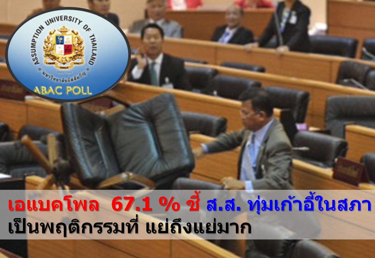 อย่างนายอรรถพร พลบุตร ที่ถือป้าย หน้าบัลลังก์ ประธานสภา แล้ว ตะโกนว่า สภาทาส